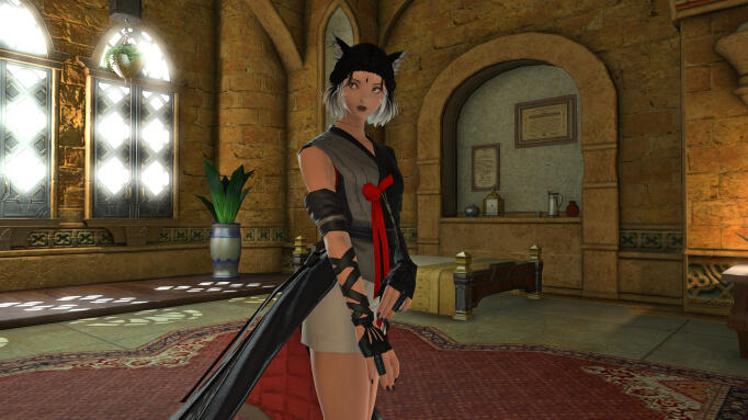Z’harem served the Nishimotos and their wonderful daughter proudly after that night, learning how to properly cook and clean, eventually being allowed to travel to Gridania to join the archer’s guild, honing her skills as an archer, learning to hunt ethically and respectfully. Even helping take down her family, who she once had respect and love for, but now sees them for who they are, poachers and murderers.Years past, and when she was 18 she was taken aside by Mr. Nishimoto and given the most important task a father could give a retainer; Protect Say’ri with all you have and keep her taken care of and happy, and in return get paid handsomely, a house for them to live in and the respect of the Nishimotos. She happily accepted and later that day set off on a ship to Limsa to start her journeys as a bodyguard and adventurer.